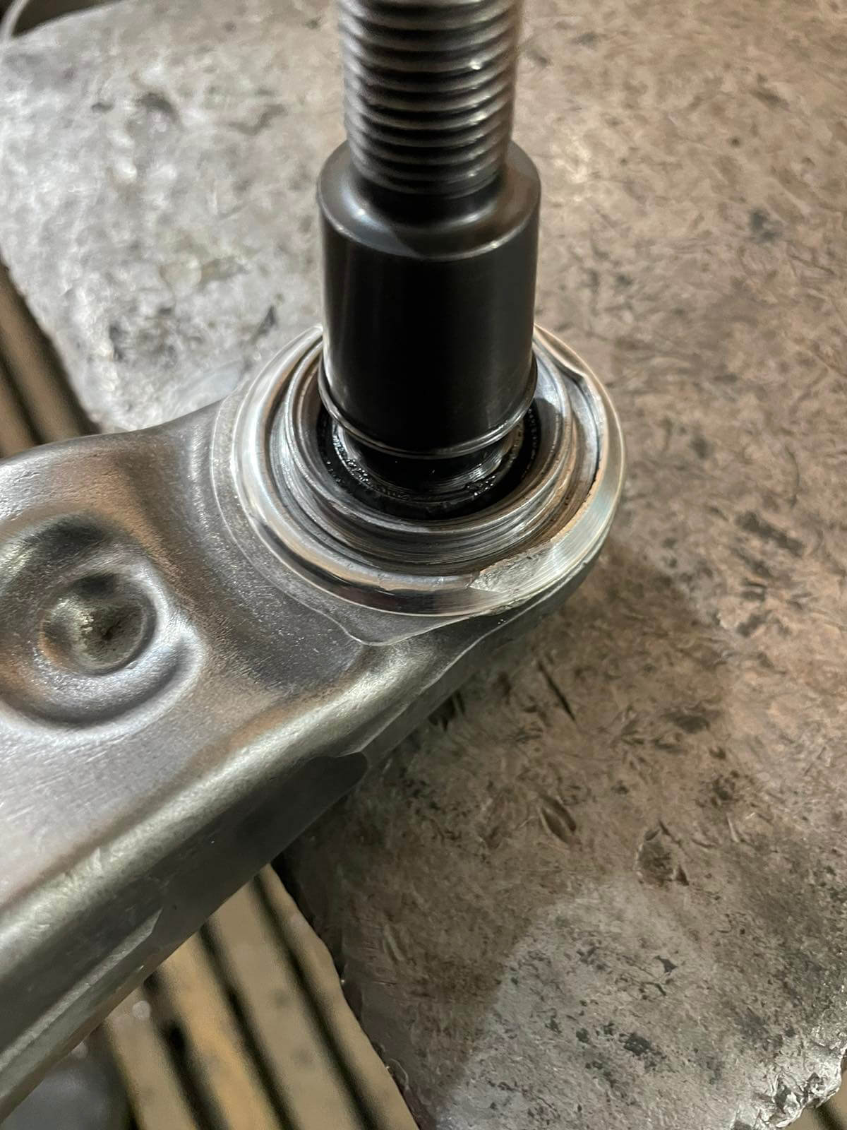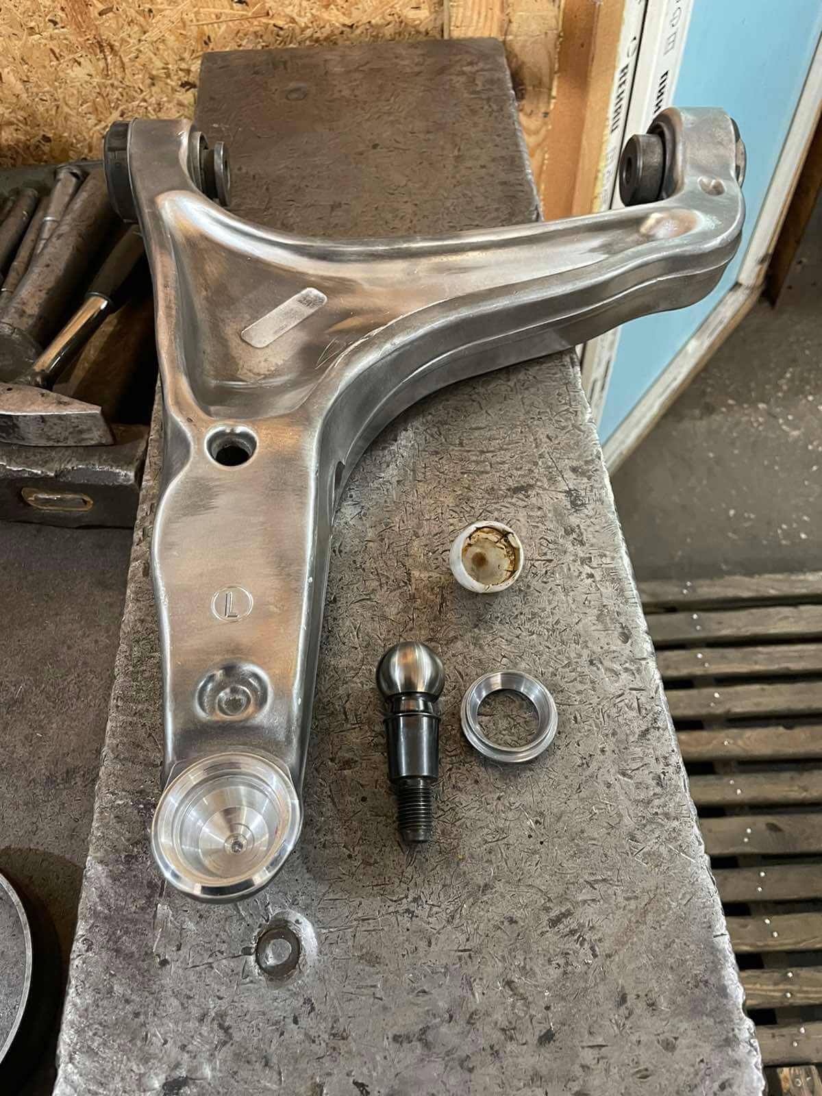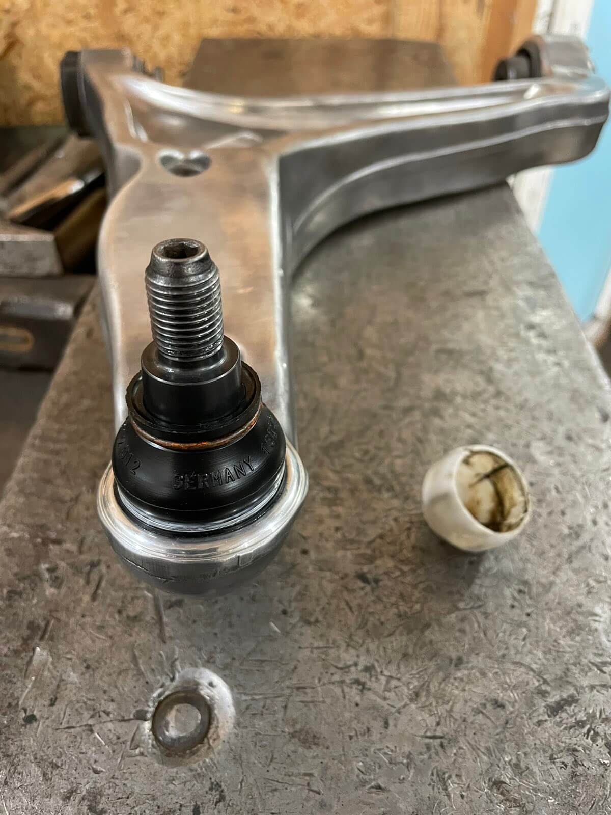 Проблема: Владелец столкнулся со стуком в шаровой опоре в рычаге из-за выработки. Покупка новых оригинальных рычагов на эту модель обходится дорого, а сроки поставки составляют несколько недель.