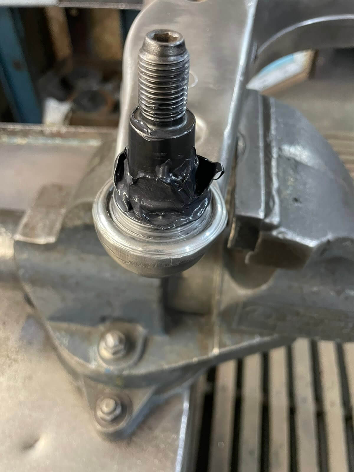 Заливаем шаровую основу пальца в корпусе рычага Maserati Levante